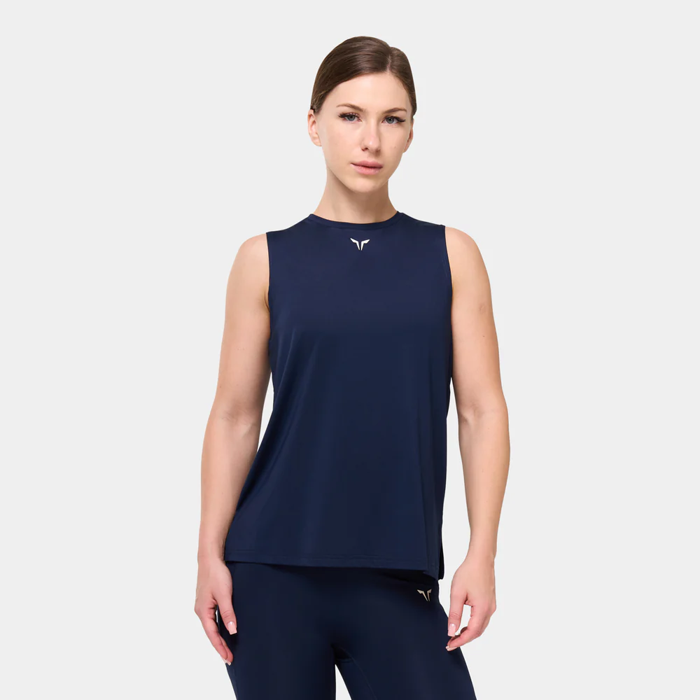Ribbed binding for a clean, structured finish Crew neckline Parallelogram-shaped side seam insert with mock eyelet fabric Side split hem for ease of movement Icon logo at front chest