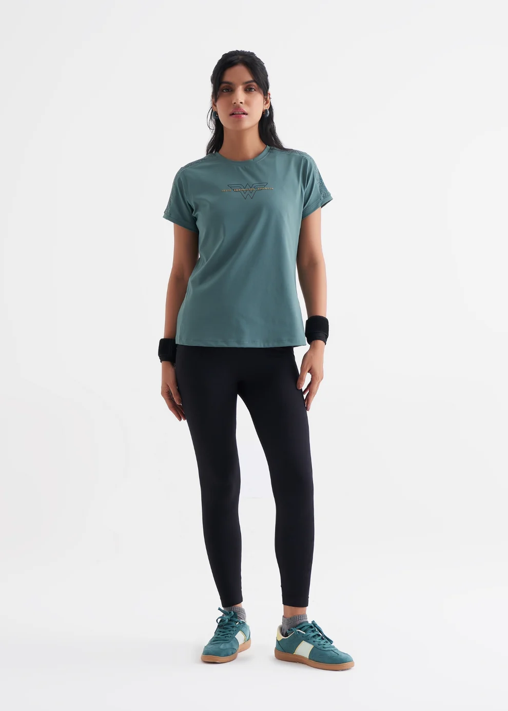 Step into your power with this exceptional training tee. Designed with Side-Front Contour Panels for a flattering fit, it also boasts striking Printed Shoulder Panels featuring a Multi-Colour Graphic.